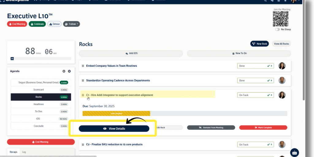 The overall Project completeness is automatically calculated based on the sum of Task statuses relative to the deadline of the Project, but don’t worry, the application provides flexibility. In meetings where the Project is included in the agenda, the Project Owner can use an editable dropdown to convey the Project‘s progress, such as selecting “On Schedule.” This human element allows Project owners to keep stakeholders informed about the Project‘s status and mitigates concerns.