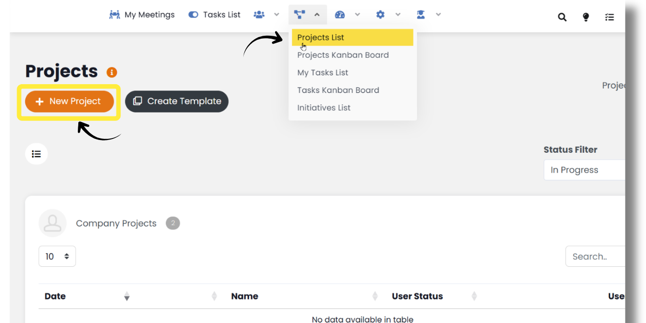 If your role has the permission “Create/Edit Projects“, you’ll see “Projects” in the main navigation. Click on “Projects List” to see all the current Projects you have access to see.