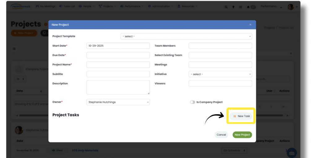 Select the “Owner” of the Project. The Project Owner is the person ultimately responsible for the Project. Keep in mind that the Owner is not necessarily actually ON the Project team.
