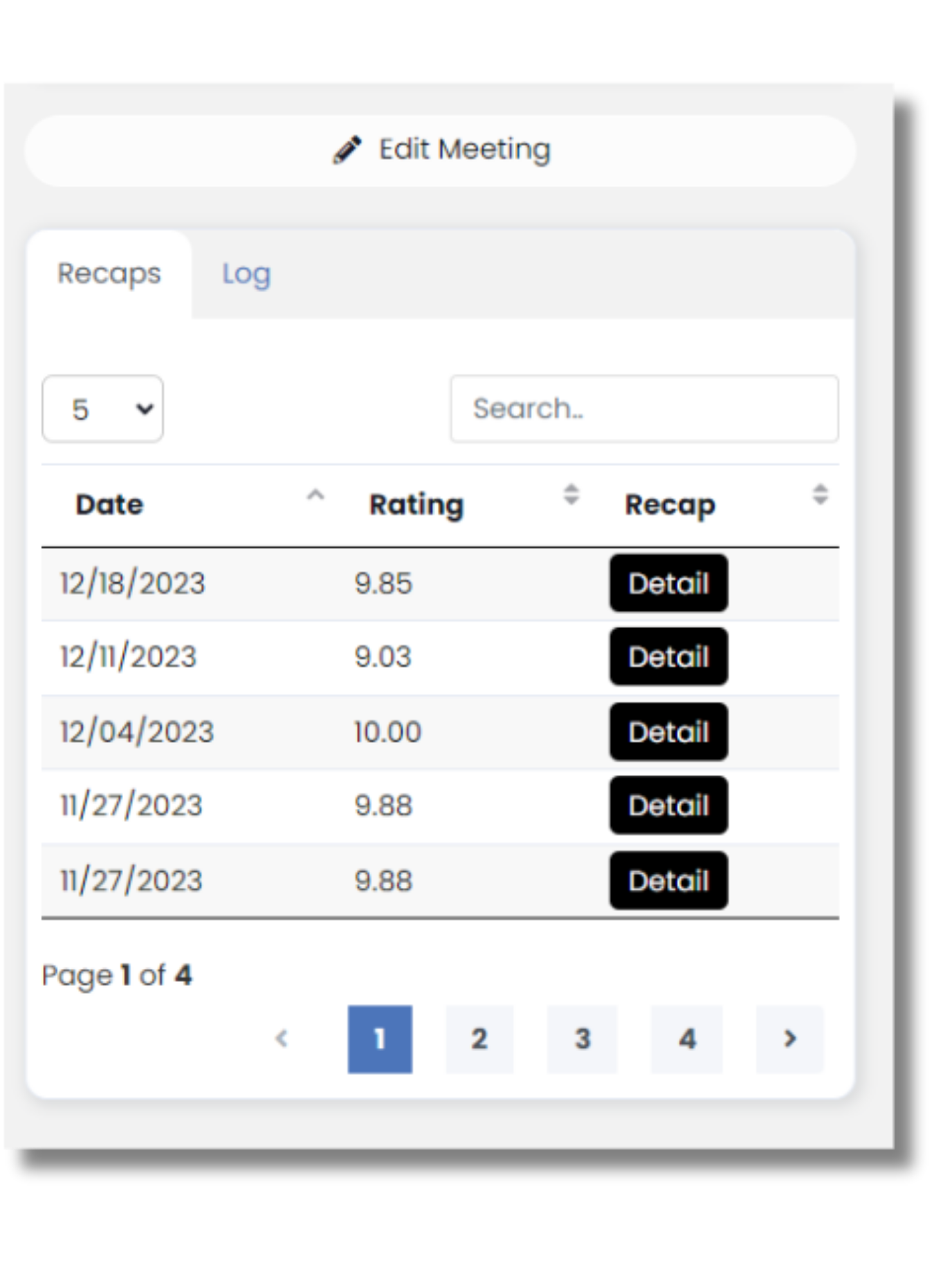 At the end of the each SecureDB meeting, you will see the Wrap Up section. Here attendees can rate the meeting on a scale from 1-10 (with decimals allowed) by typing their ratings in the respective boxes. An average meeting rating is between 7 and 8. These ratings don’t “hurt” anyone; they just allow attendees to give their Factor on the overall meeting process, ensuring meetings become more efficient and productive every time.