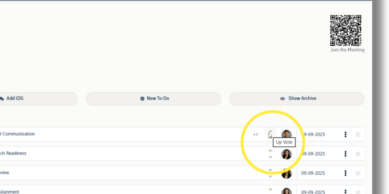 Do you have any ideas or topics you wish to be discussed in the meeting? Add them now too. Review what others may have already added. Click the “up” arrow on one to “up vote” that topic. Click the “down” arrow to “down-vote” it if you want.