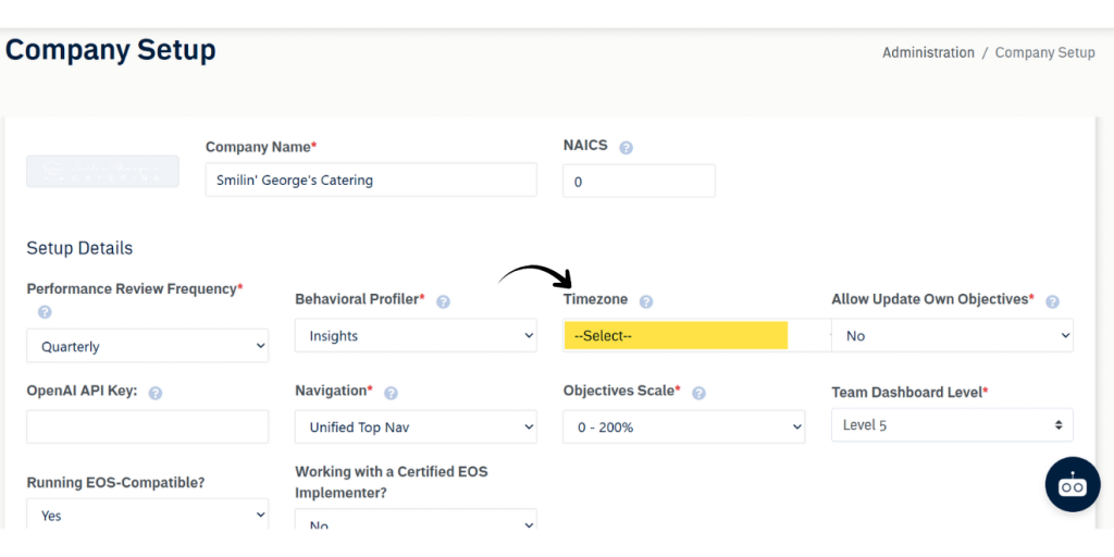 The Timezone setting in Administration >> Company Settings determines the default timezone for your organization. This default timezone is automatically applied to users who have not selected a personal timezone in their user profiles.