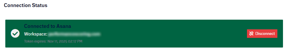- Once connected, your Asana account will appear as “Linked” under Integrations.