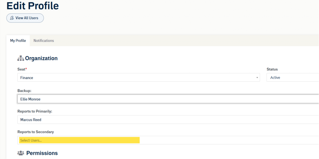 Now that you understand “Reports To,” you may have already noticed its limitation. What if Nina, who is in charge of HR, needs to see Thomas’ data except Thomas does not report to Nina up the chain? That’s why you’ll find a second field in each user’s profile called Reports To Secondary. In Thomas’ profile, we would add all the users who need to see his data, even if he does not report to them primarily through the hierarchy.