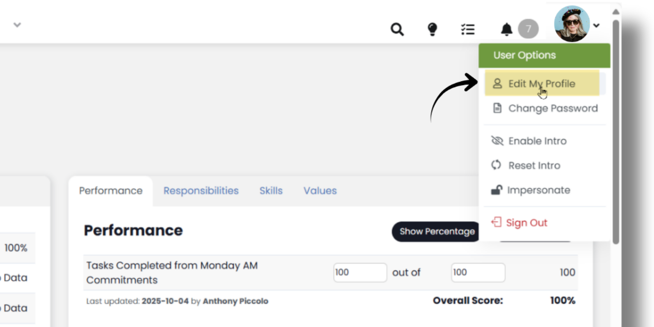To update your basic profile information, click your name in the upper right corner then select “Edit My Profile.”